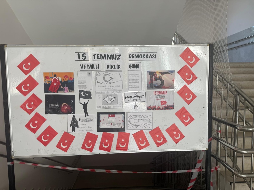 Okulumuzda 15 Temmuz Demokrasi ve Millî Birlik Günü kapsamında pano hazırlandı. Öğrencilerimiz, günün anlam ve önemini anlatan kısa filmi izleyerek demokrasi ve milli birlik konusunda bilinçlendirildi.
